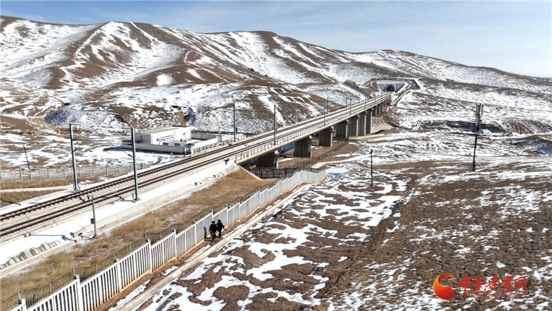 天祝西站派出所民警在護(hù)網(wǎng)旁前行,在人跡罕至的高原,他們用日復(fù)一日的堅(jiān)守,守護(hù)著列車的飛馳與旅客的歸途