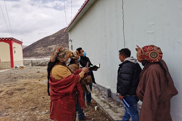 圖為石渠縣紀(jì)檢監(jiān)察干部到受災(zāi)的長須貢瑪鄉(xiāng)、溫波鎮(zhèn)、瓦須鄉(xiāng)等鄉(xiāng)鎮(zhèn),深入震中實地查看排查房屋受損情況,確保受災(zāi)人員、受災(zāi)房屋等情況核實精準(zhǔn)。