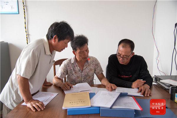 廣西壯族自治區(qū)鹿寨縣鹿寨鎮(zhèn)波井村村務監(jiān)督委員會成員定期對村級黨務、村務、財務公開情況及三重一大重要事項的決策等進行監(jiān)督檢查,確保村級事項決策公平、公開透明。(廣西壯族自治區(qū)柳州市鹿寨縣紀委監(jiān)委 韋娟 攝)