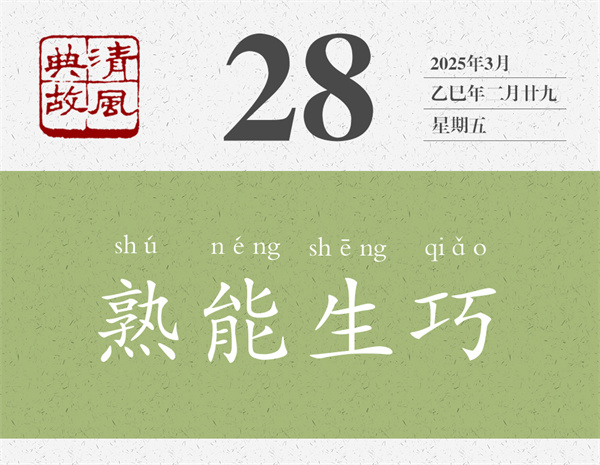 陳堯咨的射術(shù)不是不高,但用“無他,但手熟爾”來評(píng)價(jià),給人的感覺是輕飄飄的;賣油翁往葫蘆里倒油的技術(shù)也不是不高,但賣油翁自己也說是“我亦無他,惟手熟爾”。在這個(gè)故事后面,歐陽修還說了一句話:“此與莊生所謂解牛、斫輪者何異?”“‌‌解牛”即“庖丁解牛”,“斫輪”即“輪扁斫輪”,前者即典故“游刃有余”之源,后者即典故“得心應(yīng)手”之源。意思是,這些并不神秘,都是“惟手熟爾”。后人即以“熟能生巧”為典,形容實(shí)踐多了,自然就能找到竅門,產(chǎn)生出巧妙的辦法,干起事來就能隨心所欲。董必武的詩《次稚天韻》:“會(huì)者不難終要學(xué),熟能生巧豈徒詩。”