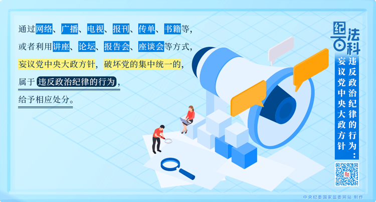 執(zhí)紀(jì)監(jiān)督中發(fā)現(xiàn),有的黨員、干部“當(dāng)面不說(shuō)、背后亂說(shuō)”“會(huì)上不說(shuō)、會(huì)后亂說(shuō)”“臺(tái)上不說(shuō)、臺(tái)下亂說(shuō)”,對(duì)黨中央大政方針說(shuō)三道四。這些言論擾亂黨員、干部思想,破壞黨的團(tuán)結(jié)統(tǒng)一,妨礙黨中央大政方針的貫徹落實(shí),必須依規(guī)依紀(jì)嚴(yán)肅處理。