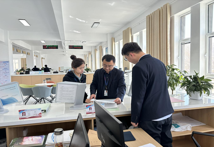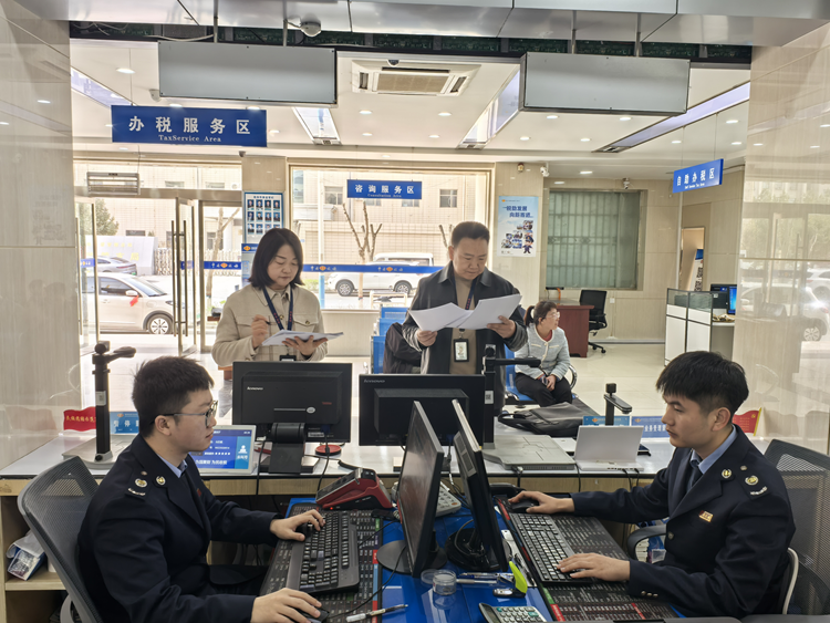 圖為民勤縣紀委監(jiān)委干部在縣稅務(wù)局辦稅服務(wù)大廳對企業(yè)審批服務(wù)、惠企政策落實等工作情況開展監(jiān)督檢查。(馬龍 攝)