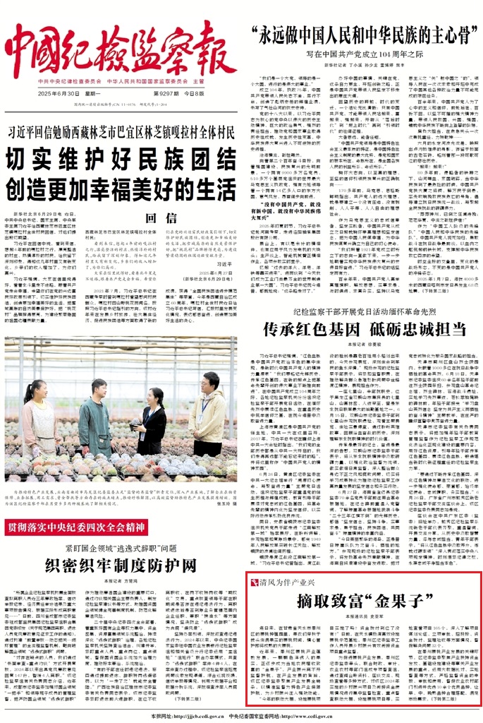 《中國紀(jì)檢監(jiān)察報(bào)》2025年6月30日 第1版