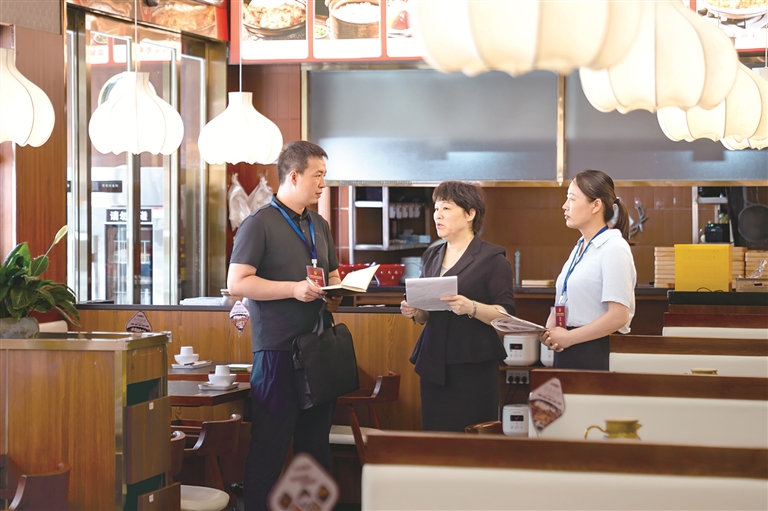 河南省漯河市郾城區(qū)紀(jì)委監(jiān)委圍繞公款吃喝、違規(guī)接受管理服務(wù)對象宴請等違反中央八項(xiàng)規(guī)定精神問題開展監(jiān)督檢查,一嚴(yán)到底狠剎歪風(fēng)邪氣。圖為近日,該區(qū)紀(jì)檢監(jiān)察干部在轄區(qū)某飯店了解相關(guān)情況。王曉 攝