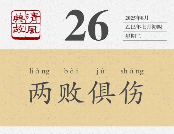 講完這個(gè)故事,陳軫言歸正傳,對(duì)秦惠王說(shuō):“今韓魏相攻,期年不解,是必大國(guó)傷,小國(guó)亡,從傷而伐之,一舉必有兩實(shí)。此猶莊子刺虎之類也。”秦惠王聽(tīng)從了陳軫的建議,后來(lái)“大國(guó)果傷,小國(guó)亡,秦興兵而伐,大克之”。后世即以“兩敗俱傷”為典,比喻爭(zhēng)斗雙方都會(huì)受到損失,誰(shuí)也得不到好處,也用來(lái)形容毫無(wú)意義的爭(zhēng)斗?!缎挛宕?bull;宦者傳論》:“雖有圣智,不能與謀。謀之而不可為,為之而不可成。至其甚,則俱傷而兩敗。”
