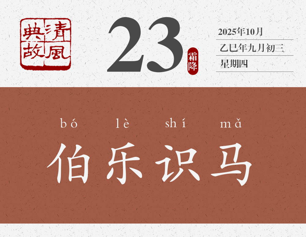 春秋秦穆公時,有一個著名的相馬師叫孫陽。因為神話傳說中,掌管天馬的神仙叫伯樂,人們?yōu)榱吮硎緦O陽的敬佩,就稱他為伯樂。屈原《九章•懷沙》以及《莊子•馬蹄》《列子•說符》都曾經(jīng)提到過伯樂?!稇?zhàn)國策•楚策四》里,春申君的舍人汗明,向春申君講了一個關(guān)于千里馬的故事:“夫驥之齒至矣,服鹽車而上太行。蹄申膝折,尾湛胕潰,漉汁灑地,白汗交流,中阪遷延,負(fù)轅不能上。伯樂遭之。下車攀而哭之,解纻衣以冪之。驥于是俛而噴,仰而鳴,聲達(dá)于天,若出金石聲者,何也?彼見伯樂之知己也。”