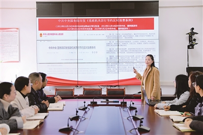 各級紀檢監(jiān)察機關(guān)抓實對黨內(nèi)法規(guī)制度的教育培訓(xùn),以學(xué)促干,不斷增強依規(guī)依紀依法履職能力和水平。圖為紀檢監(jiān)察干部在組織學(xué)習《黨政機關(guān)厲行節(jié)約反對浪費條例》。寧庭紀 攝