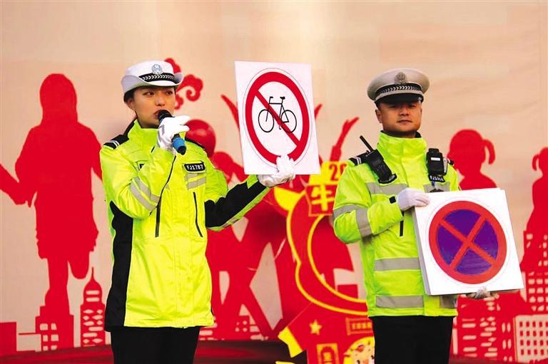 交警講解警示標(biāo)志