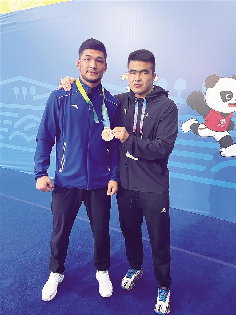 原標(biāo)題:甘肅選手木黑特·吐爾遜別克奪男子97公斤級銅牌