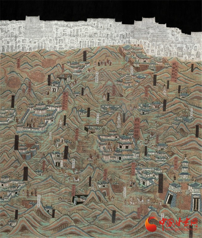 由甘肅畫院青年畫院劉峰至創(chuàng)作的國畫《中國高鐵進大山》