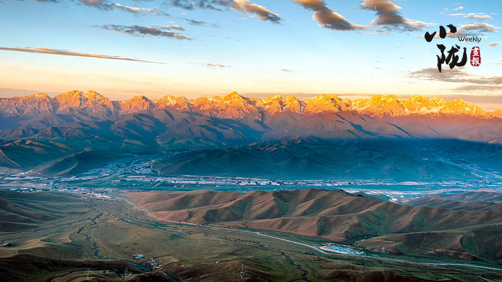 近處茵茵草場,滿是嫩盈盈的綠;遠(yuǎn)處祁連山山脊起伏,黛綠色的基底上長滿山花。