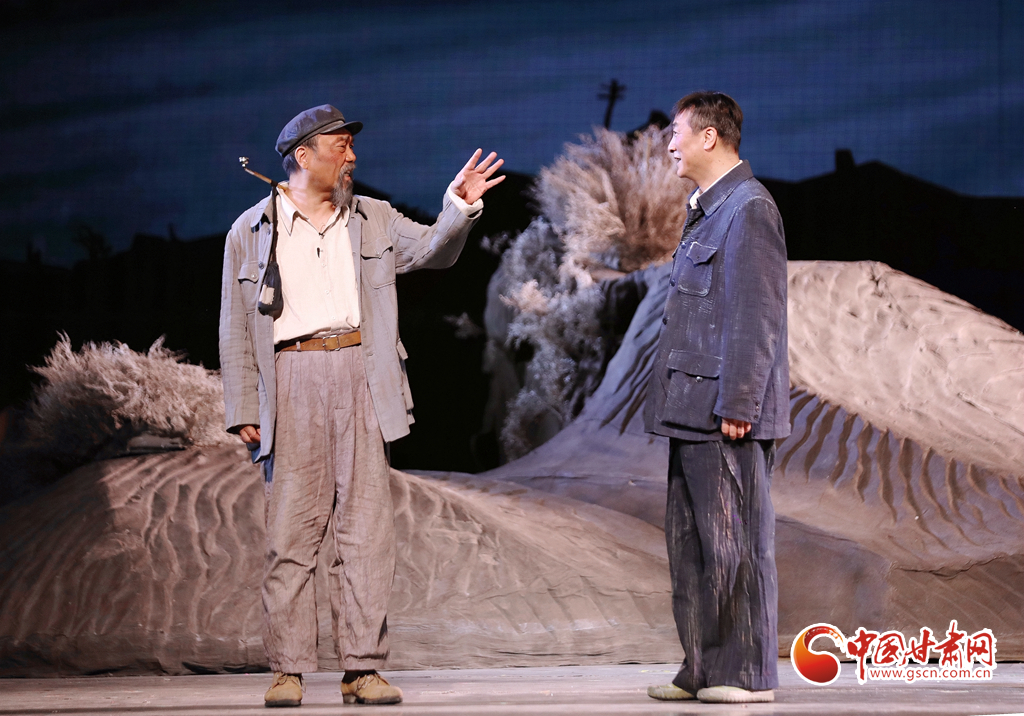 隨著演出大幕緩緩開啟,原甘肅省話劇院國家一級演員、國務院政府特殊津貼專家、中國戲劇表演梅花獎獲得者康愛石,國家一級演員、中國話劇“金獅獎”獲得者常貴順,國家一級演員、中國戲劇表演梅花獎獲得者祁寶泉等“老甘話人”,以生動的表演,藝術再現了年逾半百的“六老漢”卷起鋪蓋挺進八步沙,用愚公精神創(chuàng)造的綠色奇跡。