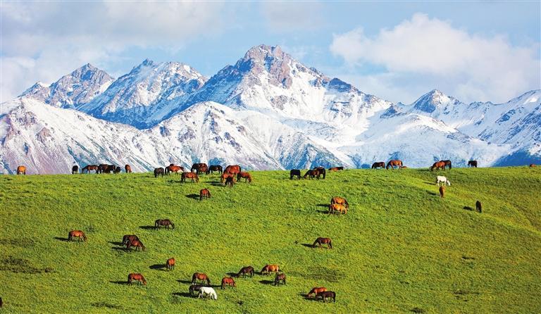 祁連山下的山丹馬場。甘肅省持續(xù)加強祁連山全域保護(hù)和系統(tǒng)修復(fù),依托現(xiàn)代科技建設(shè)“智慧祁連”,形成“天地空”一體化監(jiān)測網(wǎng)絡(luò),生態(tài)治理走上正規(guī)化信息化軌道。王 超攝(中經(jīng)視覺)