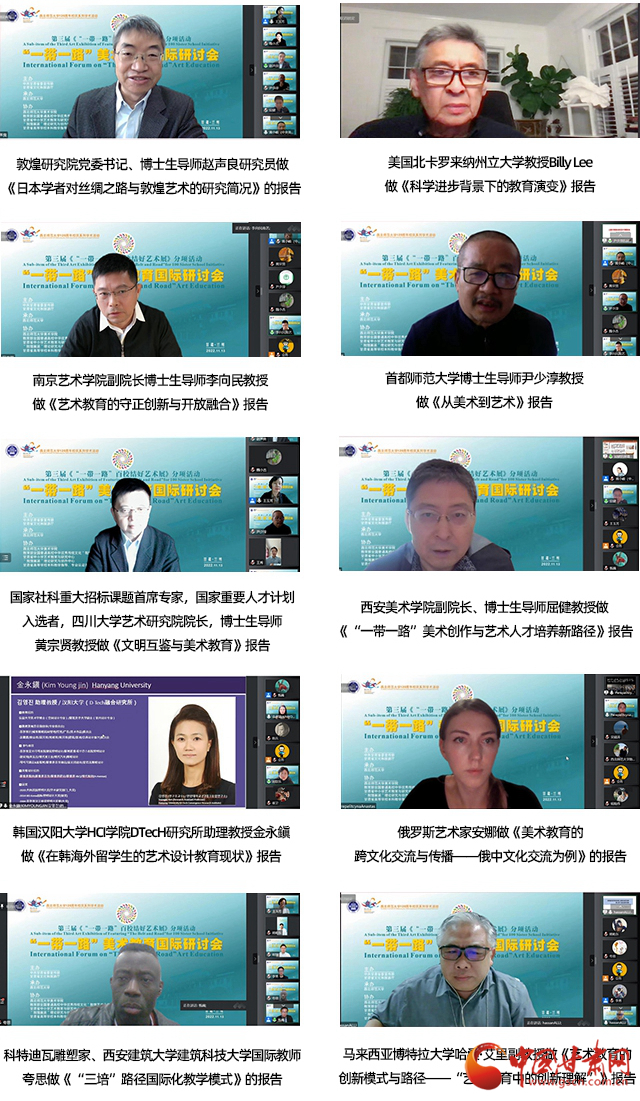 中國甘肅網(wǎng)11月16日訊 (本網(wǎng)記者 張?zhí)m琴 通訊員 王秀)推進(jìn)“一帶一路”沿線國家和地區(qū)美術(shù)交流,促進(jìn)美術(shù)教育的國際化合作和發(fā)展,搭建國際交流的學(xué)術(shù)平臺,“一帶一路”美術(shù)教育國際研討會14日在西北師范大學(xué)落幕。來自美國、韓國、俄羅斯、馬來西亞等十個國家,三十八所海內(nèi)外高校、研究院、美術(shù)館、美術(shù)協(xié)會、雜志社、中小學(xué)領(lǐng)域近五十位專家在線上參加了會議,深入分析了當(dāng)前美術(shù)教育所面臨的挑戰(zhàn)與機(jī)遇,共同探討了面向未來的美術(shù)教育模式、路徑和前景。