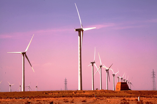 位于甘肅省酒泉市瓜州縣的風(fēng)電場(chǎng)正源源不斷地向各地輸送清潔能源。韓甜甜攝