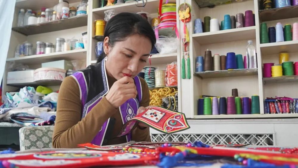 致富不忘鄰,她經(jīng)營的富達民族服飾工藝有限責任公司現(xiàn)擁有資產(chǎn)900多萬元,固定員工25人,靈活做工人員60余人。楊海燕還依托公司成立了裕固族服飾傳承培訓基地,每年舉辦3期至5期手工技能培訓班,目前已培訓社區(qū)無業(yè)人員3000多人次,帶動就業(yè)220多人。其中,30多人通過培訓已自主創(chuàng)業(yè)走上了致富路。