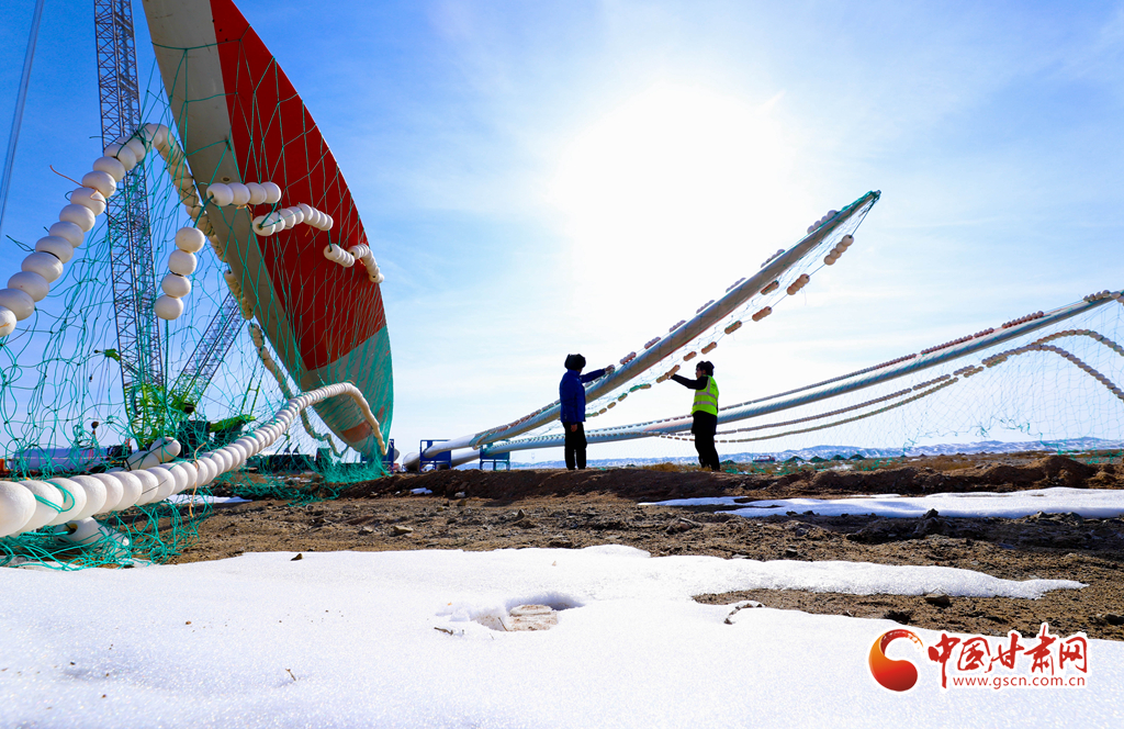 2月21日,張掖市臨澤縣板橋北灘20萬千瓦光伏發(fā)電項目建設(shè)現(xiàn)場,工作人員正在進行發(fā)電前的設(shè)備調(diào)試。