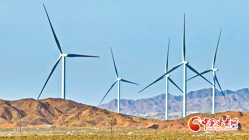 2月21日,張掖市臨澤縣平川北灘30萬千瓦風(fēng)電項目建設(shè)現(xiàn)場,已建成的風(fēng)電機組。