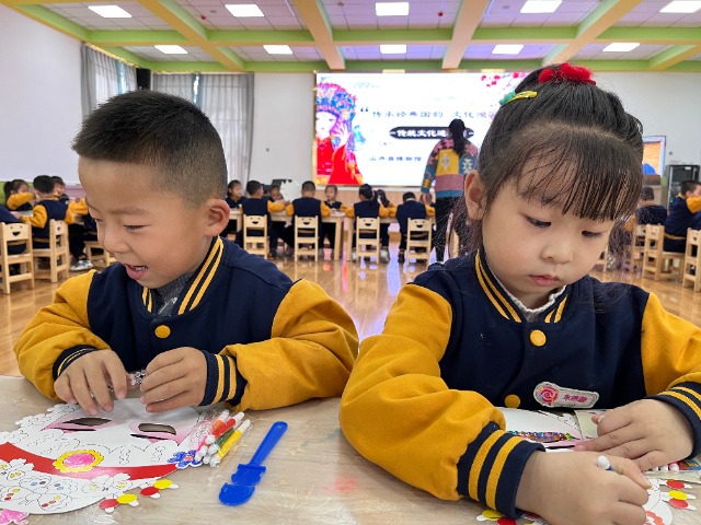 中國教育報-中國教育新聞網(wǎng)訊(記者尹曉軍通訊員張亮楊兆玉)近日,甘肅省張掖市山丹縣東街幼兒園邀請縣博物館聯(lián)合開展“傳承經(jīng)典國韻文化浸潤童心”傳統(tǒng)文化進校園活動?;顒又校┪镳^的老師不僅為孩子們講述了京劇臉譜的內(nèi)涵、特點及分類,還帶領(lǐng)孩子們模仿了戲曲選段中的動作,現(xiàn)場唱了戲曲名段。在老師的講解示范下,孩子們巧手繪制了臉譜?,F(xiàn)場孩子們熱情高漲、積極參與,傳統(tǒng)文化悄無聲息在孩子們心中“生根發(fā)芽”。