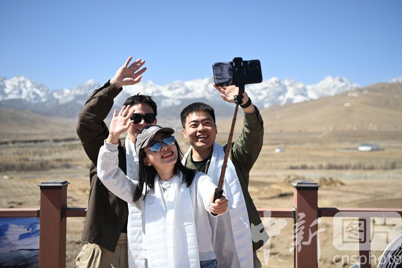 4月16日,甘肅省武威市天祝藏族自治縣,學(xué)生們?cè)诰皡^(qū)自拍留影。
