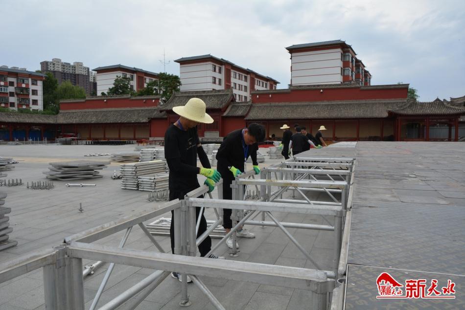 新天水訊【記者何慧娟 張彬霞】2023(癸卯)年公祭中華人文始祖伏羲大典將于6月22日舉行。日前,記者來(lái)到伏羲廟廣場(chǎng)看到,公祭伏羲大典文化豐碑矗立在藍(lán)天白云下,看起來(lái)雄渾壯麗,主舞臺(tái)搭建,旗桿、旗墩翻新等工作正有序開展,施工現(xiàn)場(chǎng)一派繁忙景象。