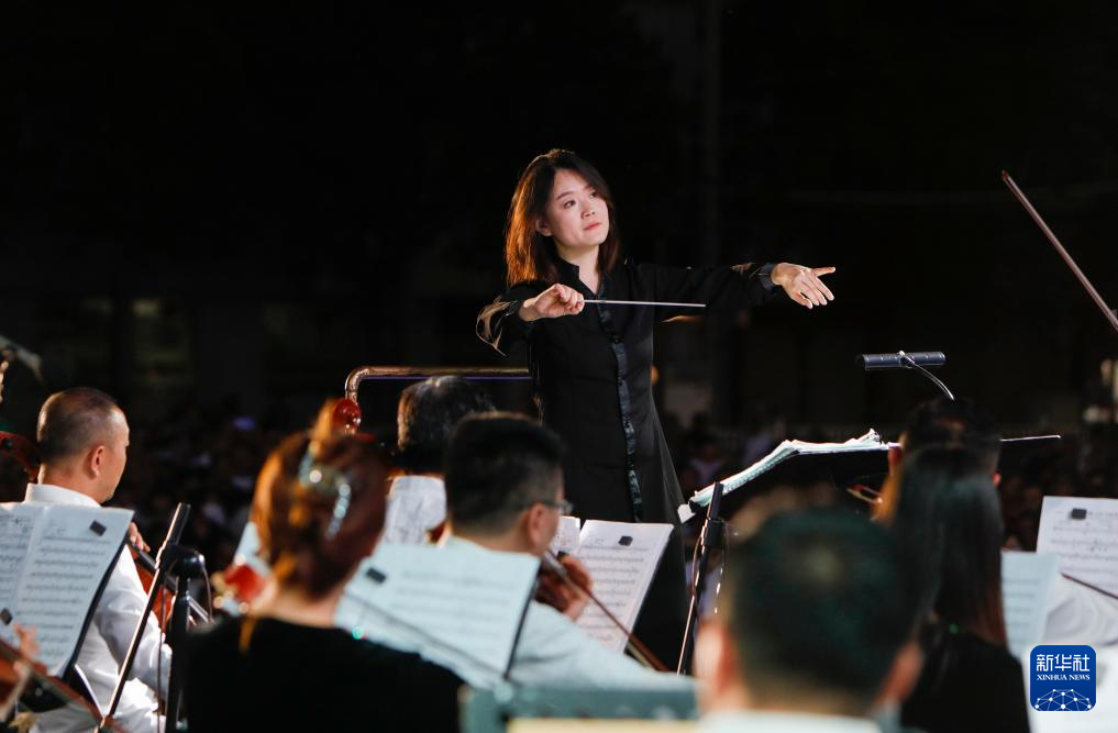 7月31日,甘肅交響樂團首席指揮王璐在指揮演奏。新華社記者 方欣 攝