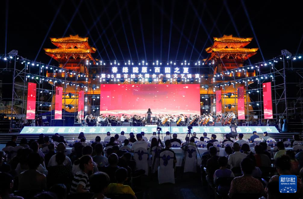 7月31日,觀眾在觀看第三十五屆“春綠隴原·西固之夏”百姓大舞臺廣場文藝調(diào)演。新華社記者 方欣 攝