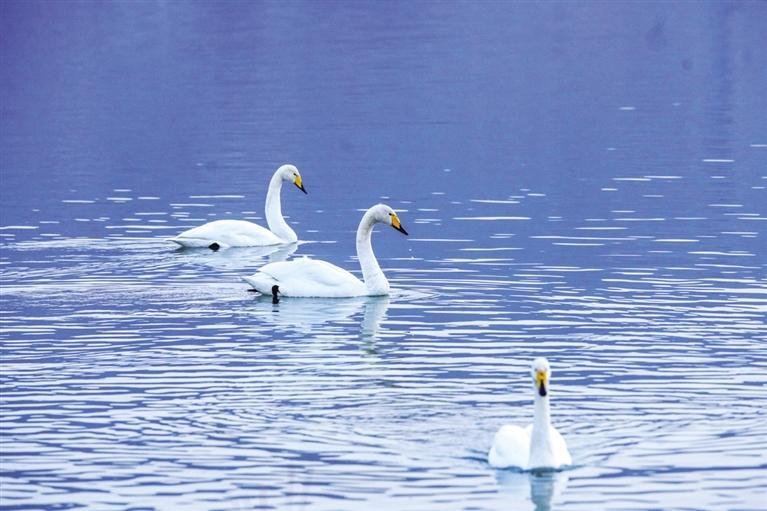 “生態(tài)好不好,鳥(niǎo)兒是晴雨表。”近日,西固區(qū)達(dá)川鎮(zhèn)三河口迎來(lái)了今年首批越冬大天鵝,吸引了眾多市民游客前往觀賞。記者從蘭州市林業(yè)局了解到,目前黃河蘭州段濕地分布和棲息的濕地鳥(niǎo)類(lèi)約有68種,其中,國(guó)家I級(jí)重點(diǎn)保護(hù)鳥(niǎo)類(lèi)3種(黑嘴鷗、黑鸛、白尾海雕),國(guó)家II級(jí)保護(hù)鳥(niǎo)類(lèi)5種(大天鵝、鴛鴦、鹮嘴鷸、白腰杓鷸、鶚)。鵲鴨、綠頭鴨、斑嘴鴨、普通秋沙鴨和漁鷗等優(yōu)勢(shì)越冬水鳥(niǎo)種群數(shù)量較大,主要棲息地分布在沿線各灘涂地,棲息地質(zhì)量較高。