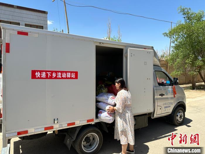 2023年7月14日,民眾在敦煌快遞下鄉(xiāng)流動驛站取件。(資料圖) 戴文昌 攝