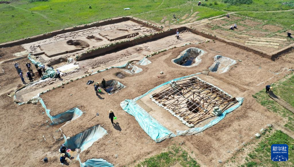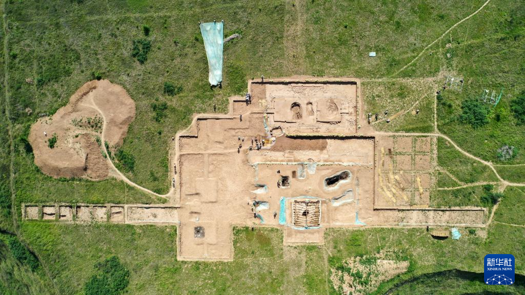 這是2022年6月10日拍攝的甘肅省隴南市禮縣四角坪遺址考古發(fā)掘現(xiàn)場(無人機(jī)照片)。新華社記者 陳斌 攝