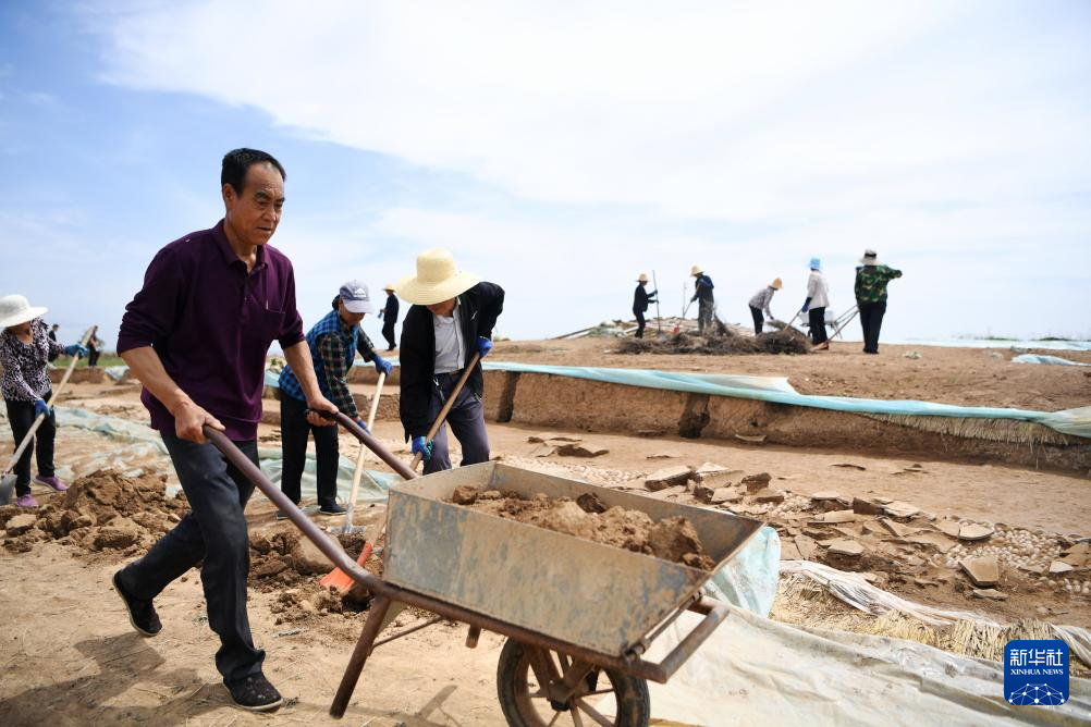 工作人員在甘肅省隴南市禮縣四角坪遺址考古發(fā)掘現(xiàn)場工作(2022年6月10日攝)。新華社記者 陳斌 攝