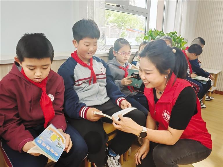 聽志愿者娓娓道來(lái),孩子們興趣漸濃,紛紛被書中精彩的故事和人物所吸引,社工王樹清、戎笑辰還和同學(xué)們結(jié)成了“讀書搭子”,約定定期分享好書和閱讀感悟。“讓孩子們?cè)诜窒砘?dòng)中激發(fā)閱讀熱情,可以更好地理解和感受書籍中的世界,對(duì)他們成長(zhǎng)非常有幫助。”王樹清說(shuō)。