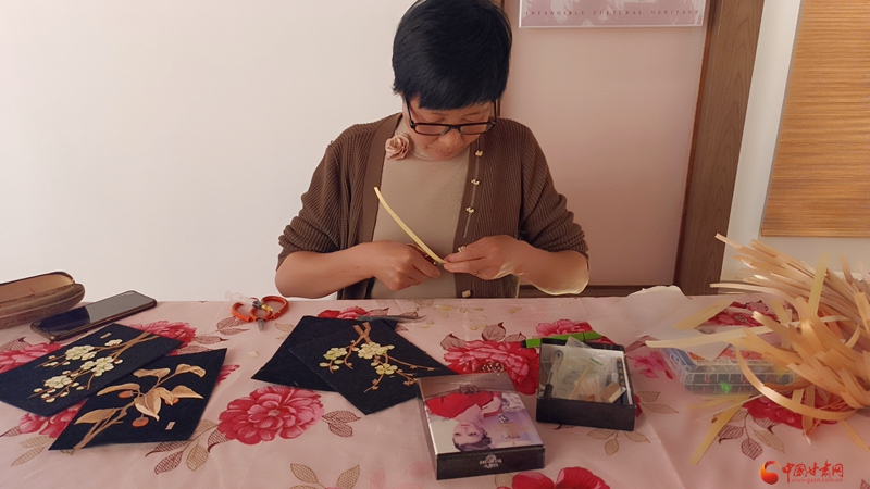 “我們收了小麥,把小麥秸稈通過浸泡、碾壓等多道程序壓制扁平,然后染色用來制作麥稈畫。”非物質(zhì)文化麥稈畫項目市級傳承人孫秀英在接受中國甘肅網(wǎng)記者采訪時說道。