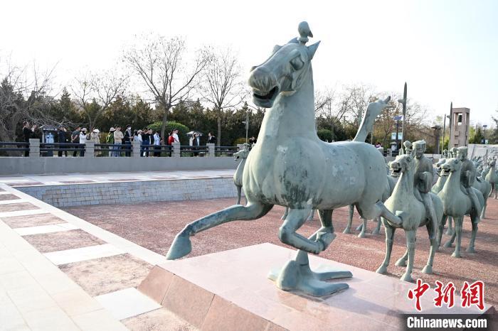 2024年4月17日,游客在中國旅游標(biāo)志“馬踏飛燕”出土地雷臺漢墓內(nèi)參觀。九美旦增 攝