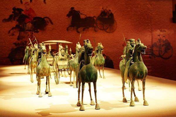 西漢時,為了抵御匈奴入侵,鞏固疆土和國家政權(quán)安全,發(fā)展壯大軍事力量,漢王朝在隴右、河西一帶擴(kuò)展牧區(qū),從西域引入寶馬良駒,繁衍馴養(yǎng),使牧場養(yǎng)馬達(dá)到前所未有的鼎盛時期。