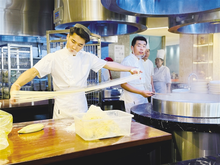 百舸爭流,千帆競渡。當(dāng)下,蘭州牛肉拉面行業(yè)紛紛在提質(zhì)升級(jí),更新迭代。近段時(shí)間以來,蘭州牛肉拉面行業(yè)的后起之秀——周達(dá)·觀金城精品牛肉面店成為不少市民游客網(wǎng)紅打卡地標(biāo)。目前蘭州市內(nèi)有牛肉拉面館1280余家,周達(dá)·觀金城精品牛肉面品牌于三年前確立,短短的三年時(shí)間里,它是怎么做到在眾多牛肉拉面店中脫穎而出的?它到底有什么特色?和蘭州其他的老字號(hào)牛肉拉面到底有什么不一樣?優(yōu)勢在哪里?帶著這一系列的疑問,8月28日,記者走進(jìn)周達(dá)·觀金城精品牛肉面店一探究竟。