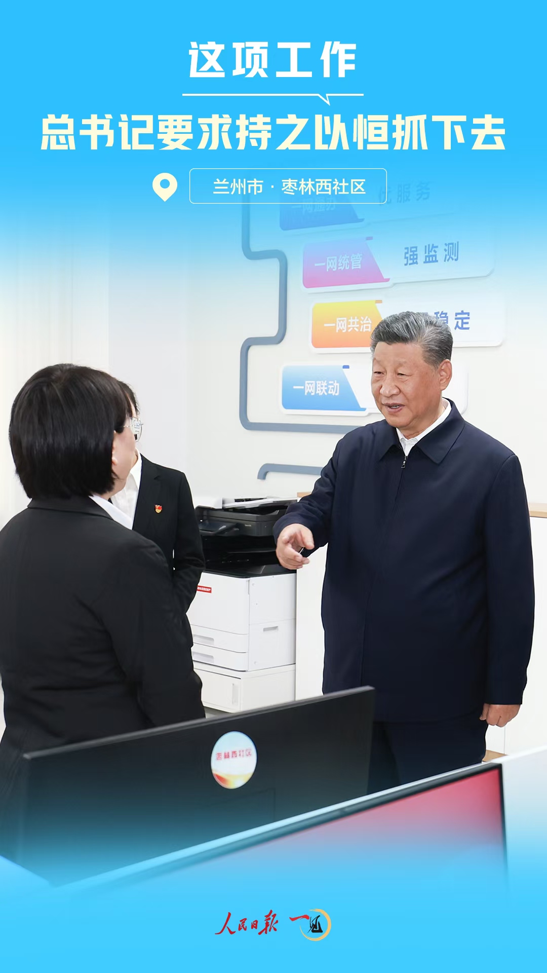 9月11日下午,習(xí)近平總書記來到甘肅省蘭州市考察。在安寧區(qū)棗林西社區(qū)黨群服務(wù)中心考察時,總書記細致詢問了落實為基層減負等情況。