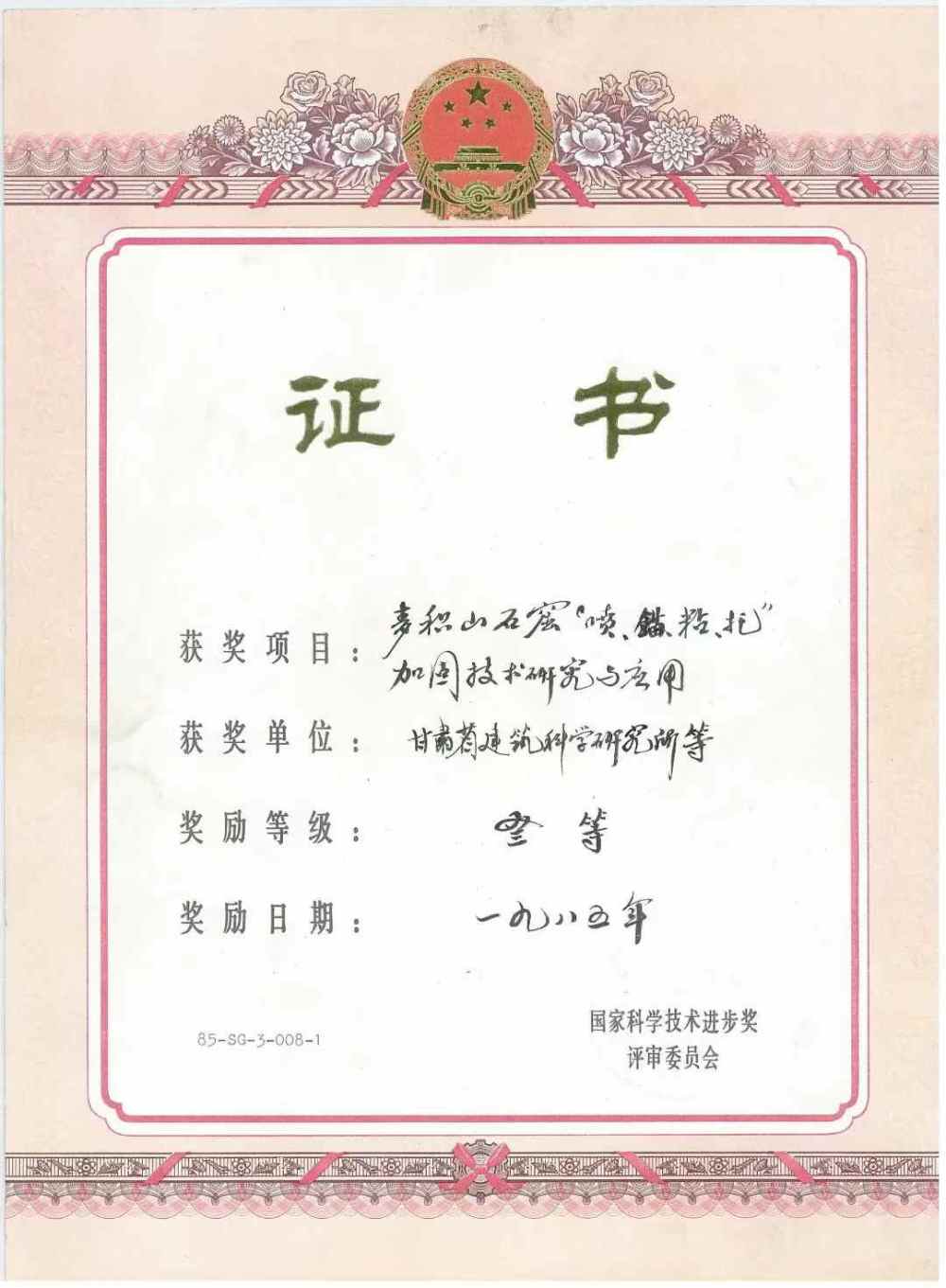 鑒定認為,麥積山石窟維修加固工程在總結(jié)了國內(nèi)巖體加固經(jīng)驗的基礎上,結(jié)合麥積山石窟巖體的特點和不改變原狀的原則,成功地采用了“噴、錨、粘、托”綜合加固技術(shù),為保護石窟文物開創(chuàng)了一條新的途徑。1985年,甘肅建科院榮獲國家科技進步獎三等獎、甘肅科技成果獎二等獎。