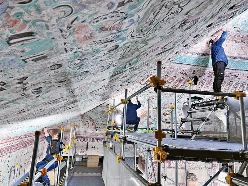 圖為2024年拍攝的莫高窟第55窟文物修復(fù)現(xiàn)場。來源:敦煌研究院供圖