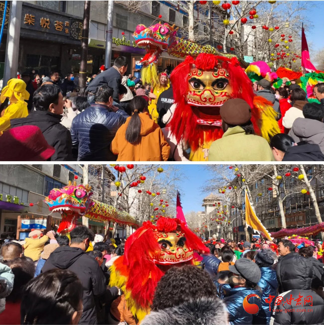 社火表演內(nèi)容豐富多樣、精彩紛呈。現(xiàn)場的笑聲、喝彩聲不斷。此外,威風的關公扮相,將福氣傳遞給市民,巨龍盤旋騰飛、獅子翻騰跳躍的舞龍舞獅更是吸睛,觀眾紛紛上前摸獅頭、鉆龍身,祈愿新的一年平安順遂?,F(xiàn)場市民都沉浸在無盡的歡樂與喜悅之中,孩子們在人群中歡呼雀躍,大人們也紛紛掏出手機,記錄下這難忘的瞬間,臉上綻放著幸福的光彩。