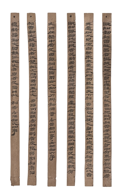 《相利善弊劍冊(cè)》(見圖)出土于甲渠候官遺址內(nèi),共6簡,約210字,規(guī)整隸書,墨色如新。該簡提出了古人辨識(shí)寶劍的一些方法和標(biāo)準(zhǔn),對(duì)研究漢代的金屬冶煉和兵器制造具有重要意義。