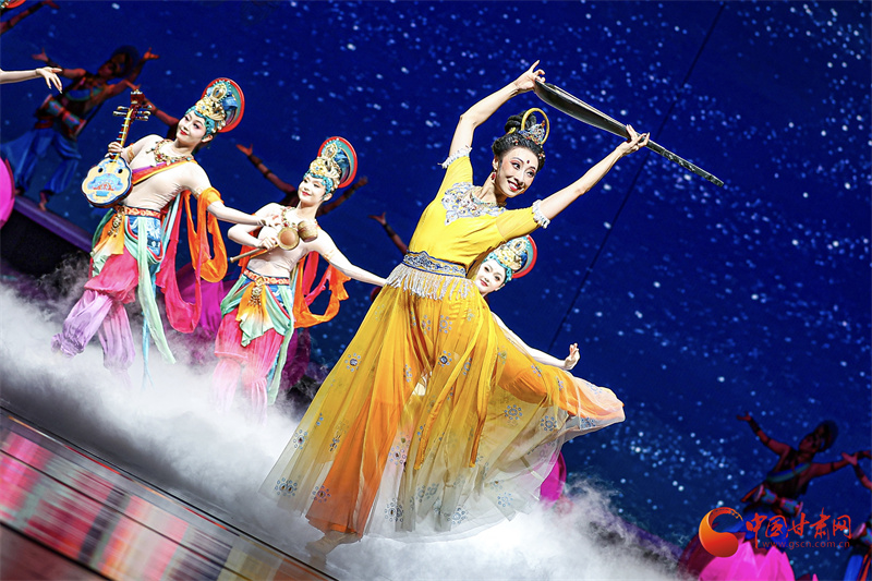 中國(guó)甘肅網(wǎng)9月21日訊(西北角·中國(guó)甘肅網(wǎng)記者 宋芳科 任磊 黃宛悠 鄭蕓蕓)絲路長(zhǎng)風(fēng)奏和合樂章,花雨繽紛迎四海賓朋。9月20日晚,在第八屆絲綢之路(敦煌)國(guó)際文化博覽會(huì)即將啟幕之際,敦煌大劇院內(nèi)華燈初上、舞韻生輝、樂聲流淌,舞劇《絲路花雨》新版作為文博會(huì)迎賓演出震撼上演。這部承載著46年藝術(shù)積淀的中國(guó)舞劇經(jīng)典,以“守敦煌舞韻之根,創(chuàng)時(shí)代表達(dá)之新”的藝術(shù)實(shí)踐,為與會(huì)全球嘉賓帶來了一場(chǎng)穿越千年的文化藝術(shù)盛宴。