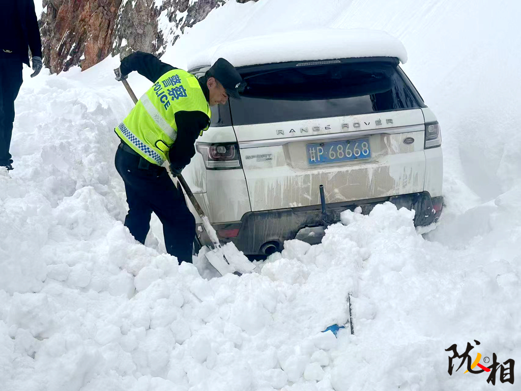 隨著江迭公路成為網(wǎng)紅自駕路線,旦知刀杰的工作增添了新的挑戰(zhàn)。2024年1月,一家5口被困在光蓋山積雪中,其中一位92歲老人出現(xiàn)高反癥狀。旦知刀杰頂著凜冽寒風(fēng)前往救援,為老人給氧、脫下自己的棉衣披在老人身上,并將老人背至警車處火速送醫(yī)。4月的一個(gè)夜晚,暴雪突襲,他帶領(lǐng)戰(zhàn)友在積雪中徒步2小時(shí),連續(xù)奮戰(zhàn)9小時(shí),安全轉(zhuǎn)移30余名被困游客。