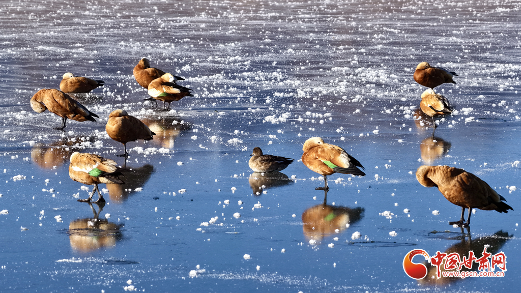 11月18日,初冬的甘肅山丹馬場鸞鳥湖濕地上,赤麻鴨、大天鵝、大白鷺三種珍稀鳥類悠然共處。它們或于冰面踱步,或在湖中游弋,或于淺灘佇立,共同構(gòu)成了濕地生態(tài)持續(xù)向好的生動(dòng)圖景。