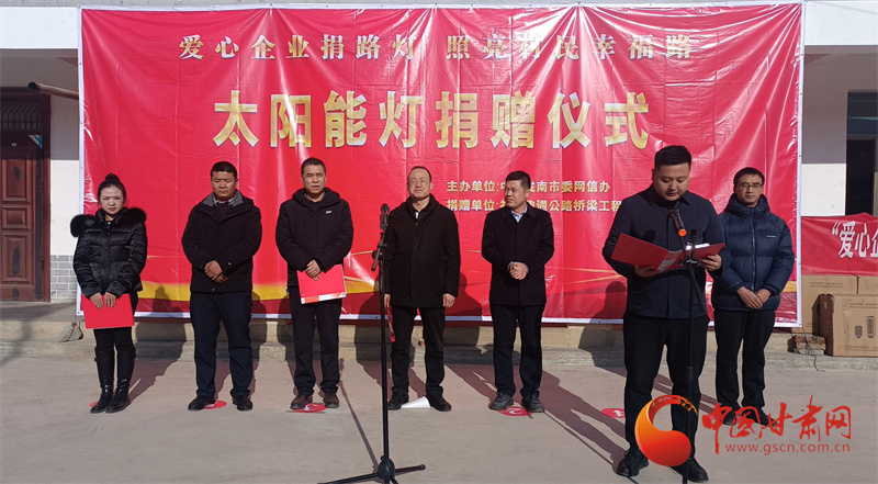 當(dāng)日,隴南市委網(wǎng)信辦還聯(lián)合禮縣工商聯(lián)、禮縣鼎通公路橋梁工程有限公司舉辦了“愛心企業(yè)捐路燈 照亮村民幸福路”捐贈(zèng)儀式,為李壩村捐贈(zèng)價(jià)值5萬元的260盞太陽能路燈,助力美麗鄉(xiāng)村建設(shè),照亮村莊夜晚。