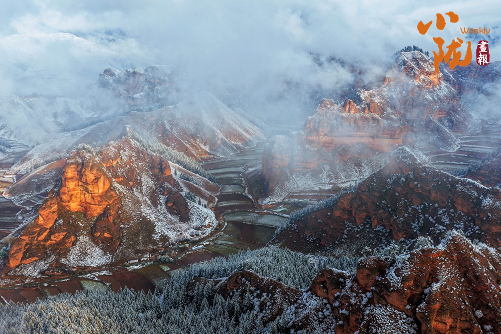 當陽光漫灑,積雪映襯著巖層的斑斕紋理,山間霧氣如輕紗浮動,仿佛大地正以靜默完成一場季節(jié)的儀式。這片雪中丹霞,既存地質(zhì)之雄魄,亦添冬日的空靈詩意。
