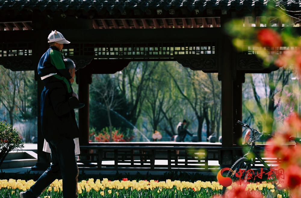 枝頭海棠熱烈潑灑,玉蘭凝脂般清潤(rùn)綻放,白頭鵯啄食春光,灰椋鳥踏過(guò)青草,麻雀在暖陽(yáng)下嬉鬧啼鳴——這是花鳥草木寫就的詩(shī)意。古亭飛檐下,晨練身影舒展安然;花影綽約間,孩童提桶追風(fēng),祖孫相伴徐行——這是尋常日子流淌的溫暖。
