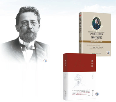 圖①:俄國(guó)作家契訶夫。   圖②:《第六病室》書籍封面。   圖③:《櫻桃園》書籍封面。   資料圖片