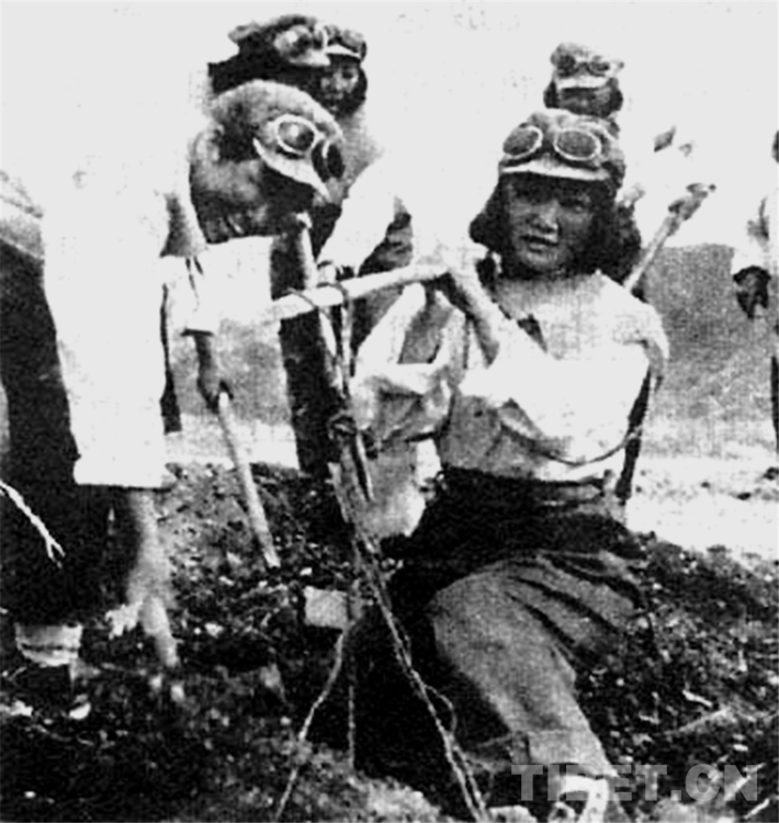 圖為《天路行軍1950——千名女兵徒步進(jìn)藏紀(jì)實》中插圖:搶修機(jī)場的女兵
