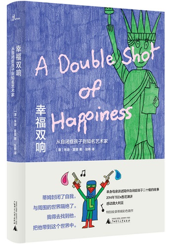 書名《幸福雙響》(A Double Shot of Happiness),來自蒂姆最愛的創(chuàng)作之一。朱迪用優(yōu)美且感人肺腑的筆觸,訴說著蒂姆漫長的人生旅程——從被診斷為重度自閉癥患者到嶄露頭角成為備受推崇的藝術(shù)家,以及一個能夠愛人與被愛的年輕人。